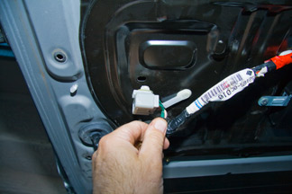The door latch cable includes retainers on both ends that slip into place on the release handle and the latch assembly.